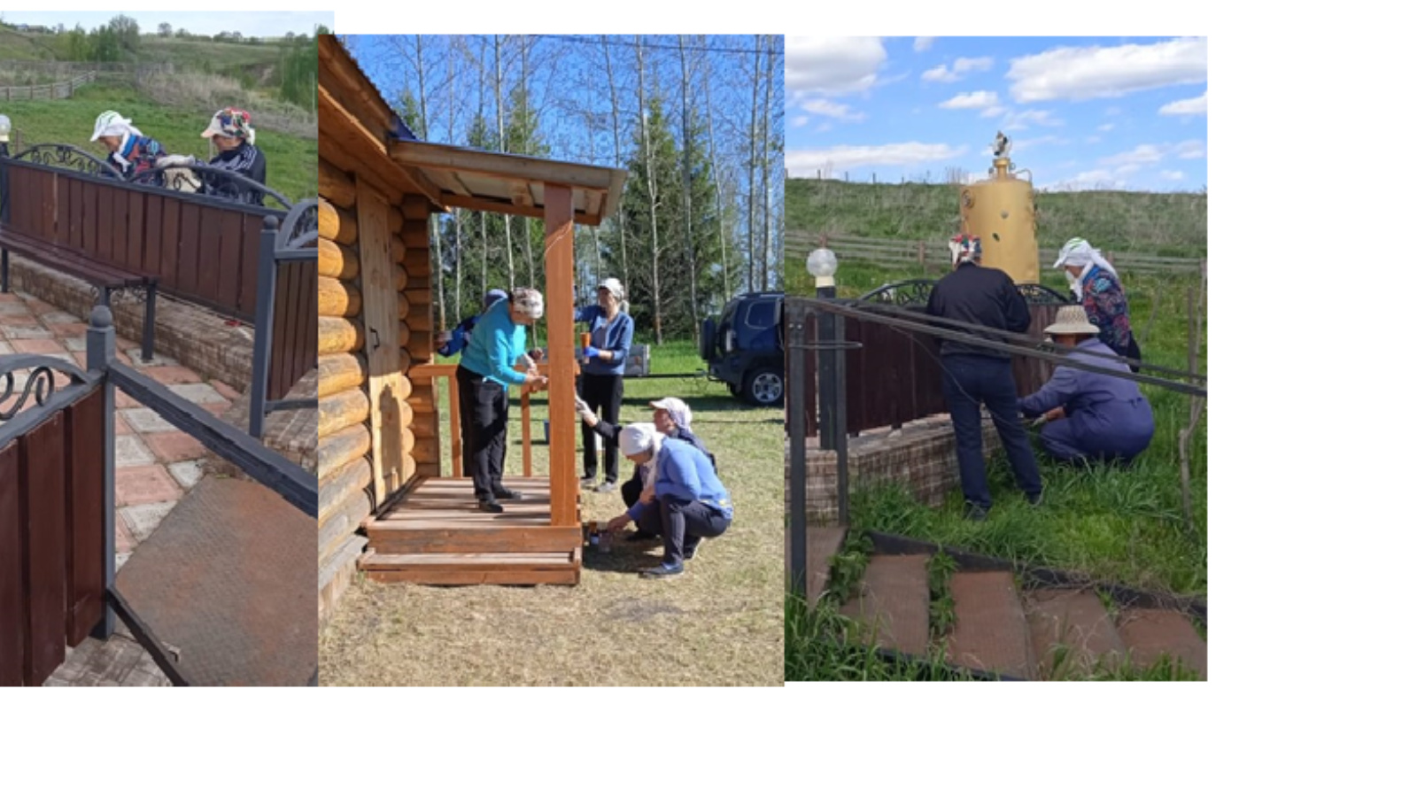 Санитар икеайлык кысаларында территорияләрне төзекләндерү дәвам итә. Чишмәдә, сабантуй мәйданчыгында буяу эшләре башкарылды.