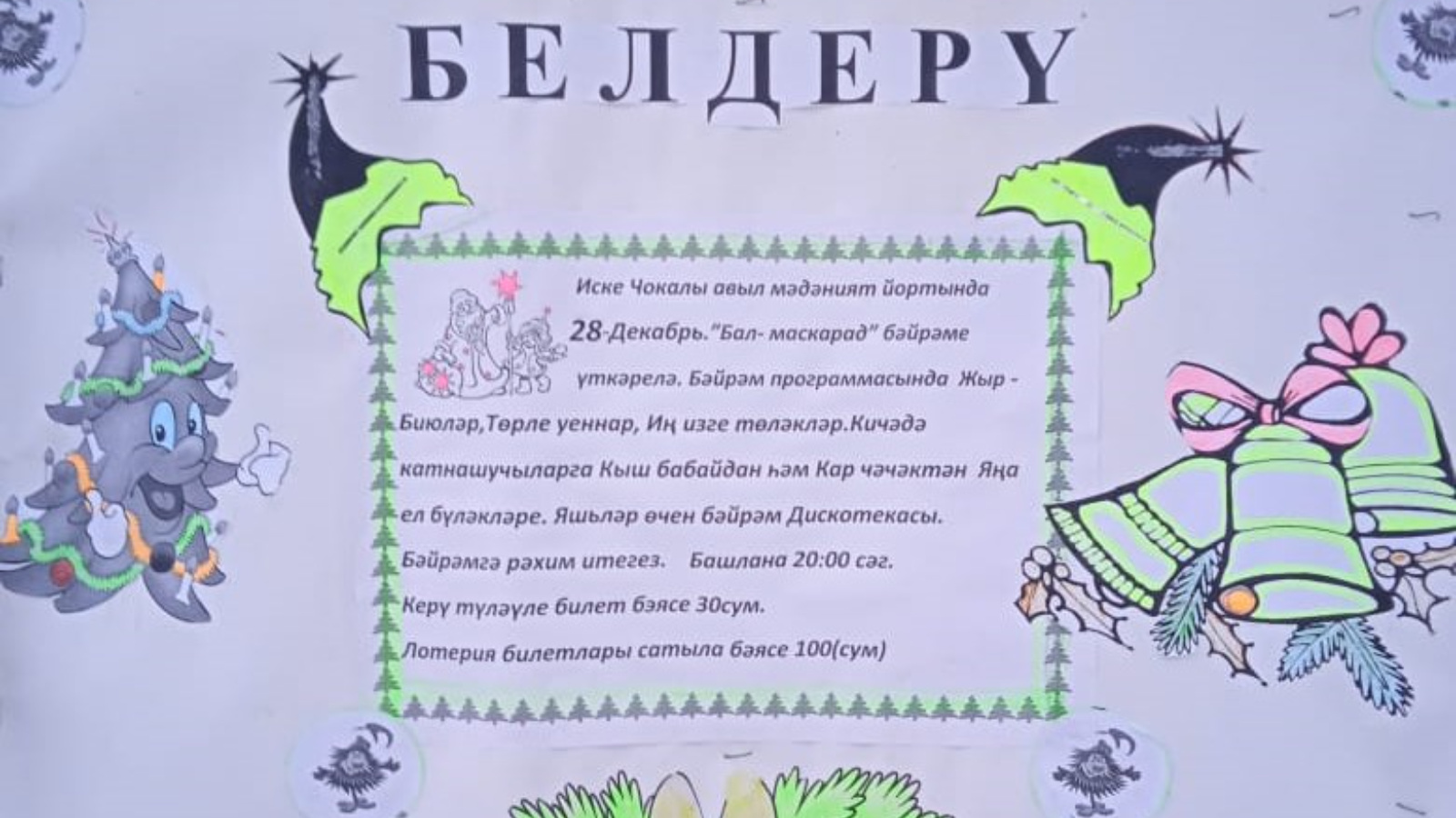 28 нче декабрь көнне Иске Чокалы мәдәният йортында бал маскарад була. Рәхим итегез.