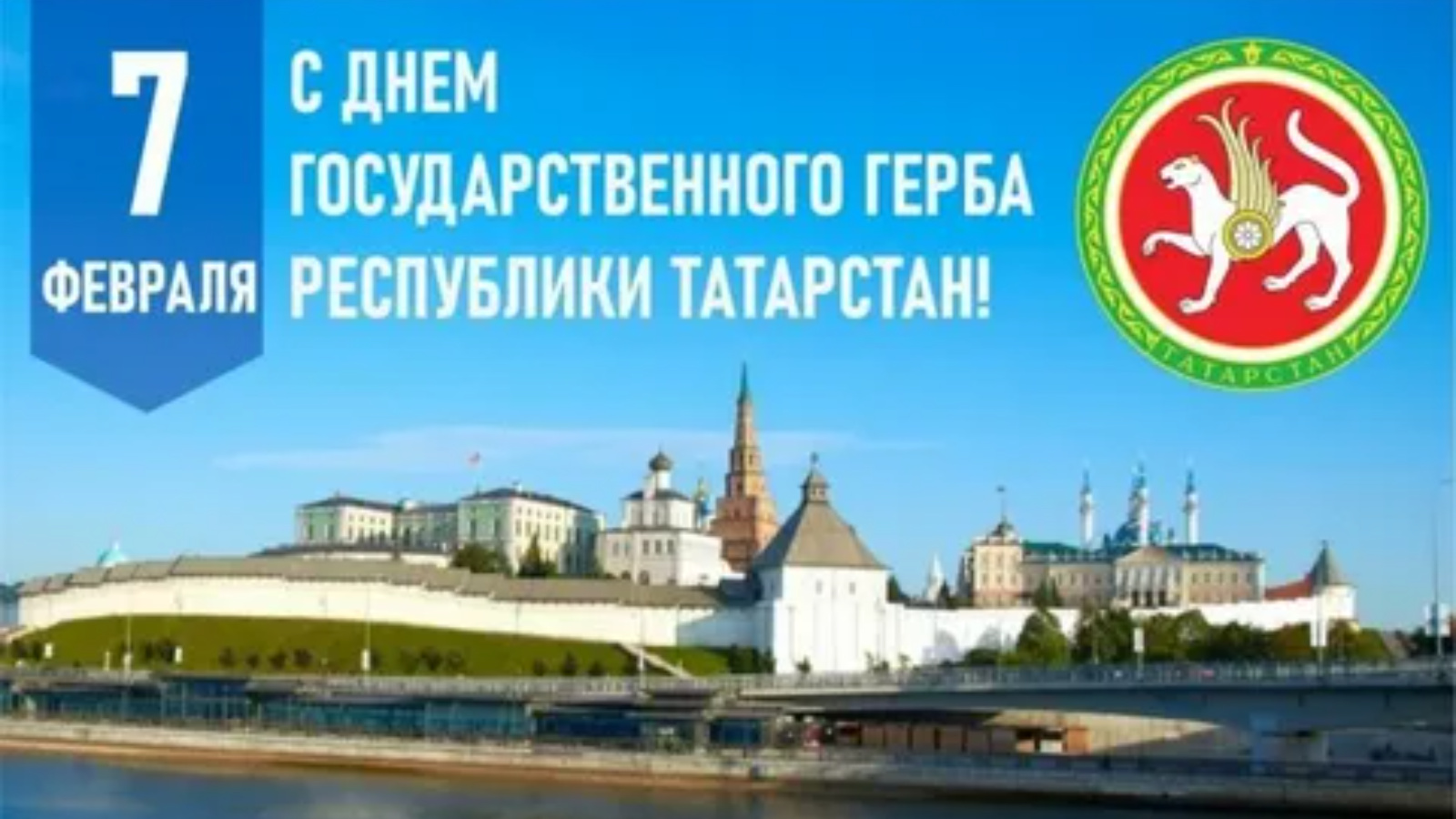 Государственный герб Татарстана утвержден Постановлением Верховного Совета РТ от 7 февраля 1992 года. Он представляет собой изображение крылатого барса с круглым щитом на боку, с приподнятой правой передней лапой на фоне диска солнца, помещенного в обрамление из татарского народного орнамента, в основании которого – надпись: «Татарстан», крылья состоят из семи перьев, розетка на щите – из восьми лепестков.