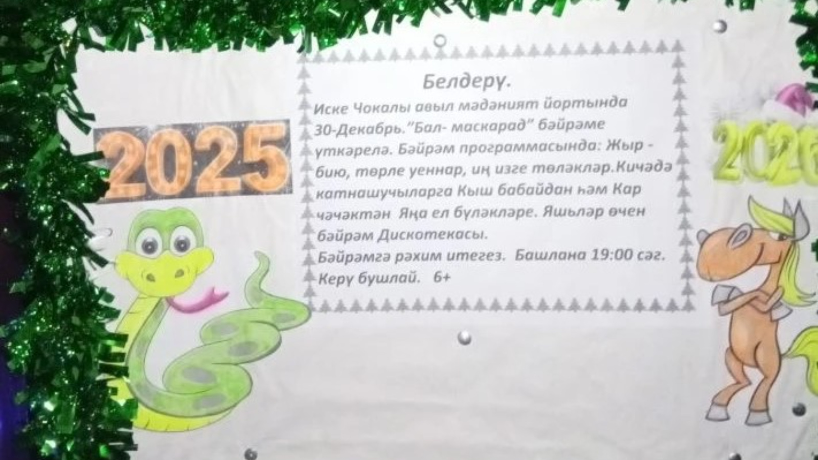 30 декабрьдә авыл мәдәният йортында бал-маскарад була. Рәхим итегез.